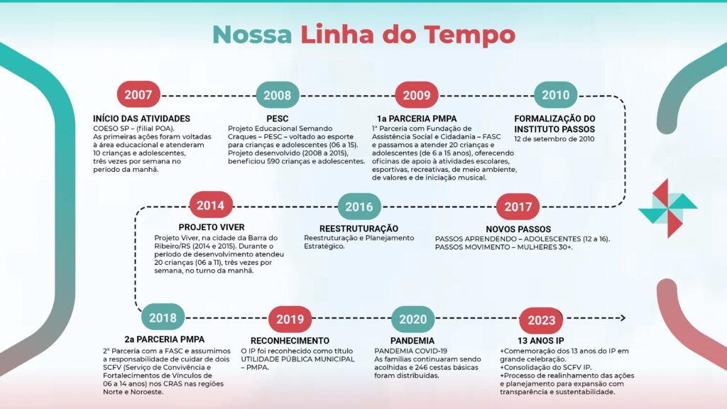 Em 2018, o Instituto firmou a 2º parceria com a FASC, para implementar o Serviço de Convivência e Fortalecimento de Vínculos (SCFV), ampliando o atendimento para 80 crianças e adolescentes (06 a 14 anos), no Centro de Referência da Assistência Social (CRAS) das regiões Norte e Noroeste, inaugurando as unidades IP Sarandi e IP Floresta. Em 2019, o Instituto foi reconhecido como OSC de Utilidade Pública Municipal pela Prefeitura Municipal de Porto Alegre (PMPA).